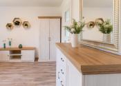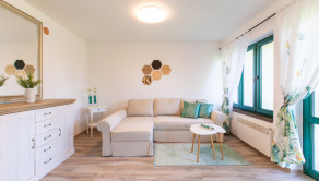 Vnútorné zariadenie rekreačnej chaty je úplne nové, štýlové, prakticky a užitočne rozložené. Nehnuteľnosť sa predáva komplet zariadená.