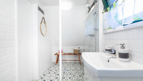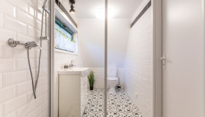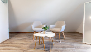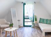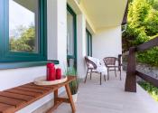 Obytné podkrovie (37,7m2) – otvorená galéria disponuje jednou veľkou miestnosťou 27,1m2 s kútom na posedenie, výstupom na ďalšiu terasu. V podkroví je kúpeľňa s sprchovacím kútom a ďalším WC 6,1m2.