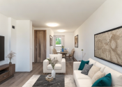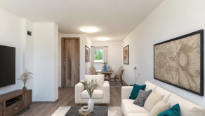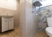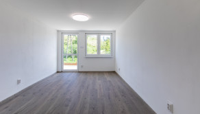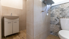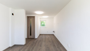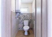 1 NP – vstup cez terasu do spoločenskej miestnosti, 17,7m2 (6,72 x 2,98) ktorá disponuje predprípravou na kuchynskú linku a v zadnej časti sa nachádza kúpeľňa so sprchovacím kútom a toaletou 3,8m2 (1,7x 2,41). Ďalšia izba má okno a balkónové dvere tiež s výstupom na terasu 18,2m2 (6,79x3,03).