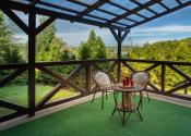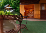 Okolie chaty je plné zelenej vegetácie, ktorá vytvára upokojujúcu atmosféru a poskytuje dostatok súkromia pre váš nerušený oddych. Nehnuteľnosť sa nachádza v prihraničnej oblasti, čo umožňuje denné dochádzanie na Slovensko. Vzdialenosť od hraníc je 25 minút.