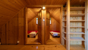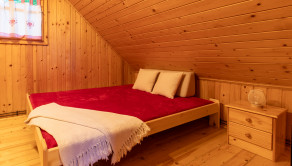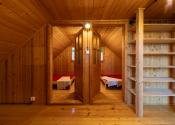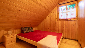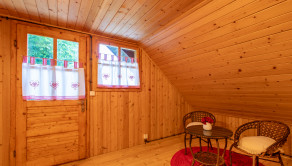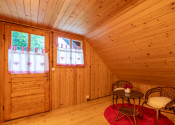 Obytné podkrovie (37,9m2) – otvorená galéria 15,9m2 s výstupom na terasu a výhľadom na jazero + dve samostatné dvoj lôžkové izby. Izba č.1 - 7,8m2, Izba č.2 - 7,6m2. V podkroví sa nachádzajú vstavané police na odkladanie vecí.