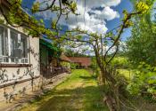Pozemok: rovinatý pozemok o výmere 1932m2, zastavaná plocha 90 m2. V prednej časti pozemku je studňa na konci veľká šopa s kamennou pivnicou a drevená garáž.